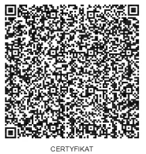 Kody QR dla kategorii KOD II (CERTYFIKAT) stosowany jest wyłącznie dla faktur wystawianych w trybie offline (offline24/tryb awaryjny/niedostępność KSeF). Zapewnia od odbiorcę faktury o autentyczności jej pochodzenia oraz integralności jej zawartości. Umożliwia również weryfikację, czy certyfikat jest aktywny oraz czy wystawca faktury posiada stosowne uprawnienia. Aby wygenerować wspomniany kod, niezbędnym jest posiadanie stosownych uprawnień tj. certyfikatu KSeF. Poniżej przykładowy kod graficzny: